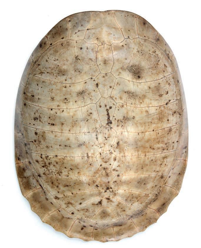 In 19th century Germany, the Romantic wholesome idea of the mythical Worldbearing turtle, appropriated from American Indigenous, Chinese and Hindu Mythology, was still very alive and an attractive thought. In the Wunderkammer, the criteria which governed the selection of objects, rarity and strangeness served to blur the boundaries and create a direct synthesis between the three kingdoms of ‘Exotica’, ‘naturalia’ and ‘artificialia’. As a whole, this meticulously decorated carapace is a formidable example of everything above.