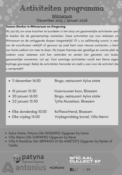 Minsken as jimme no ek mei sa wat sitte, lit it ús dan efkes witte. Evert Zwier Verlengde Oostend 17 8748AP (532147), Geertje Verhoeve (531392), Titia Banga (531572) of Wietske Sierkstra (532047) e-mail: evertzwier@outlook.com