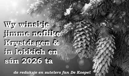 Mei út namme fan de redaksje winskje ik jimme Gesellige Krystdagen, in Noflike Jierwiksel en in Lokkich Nijjier ta.
