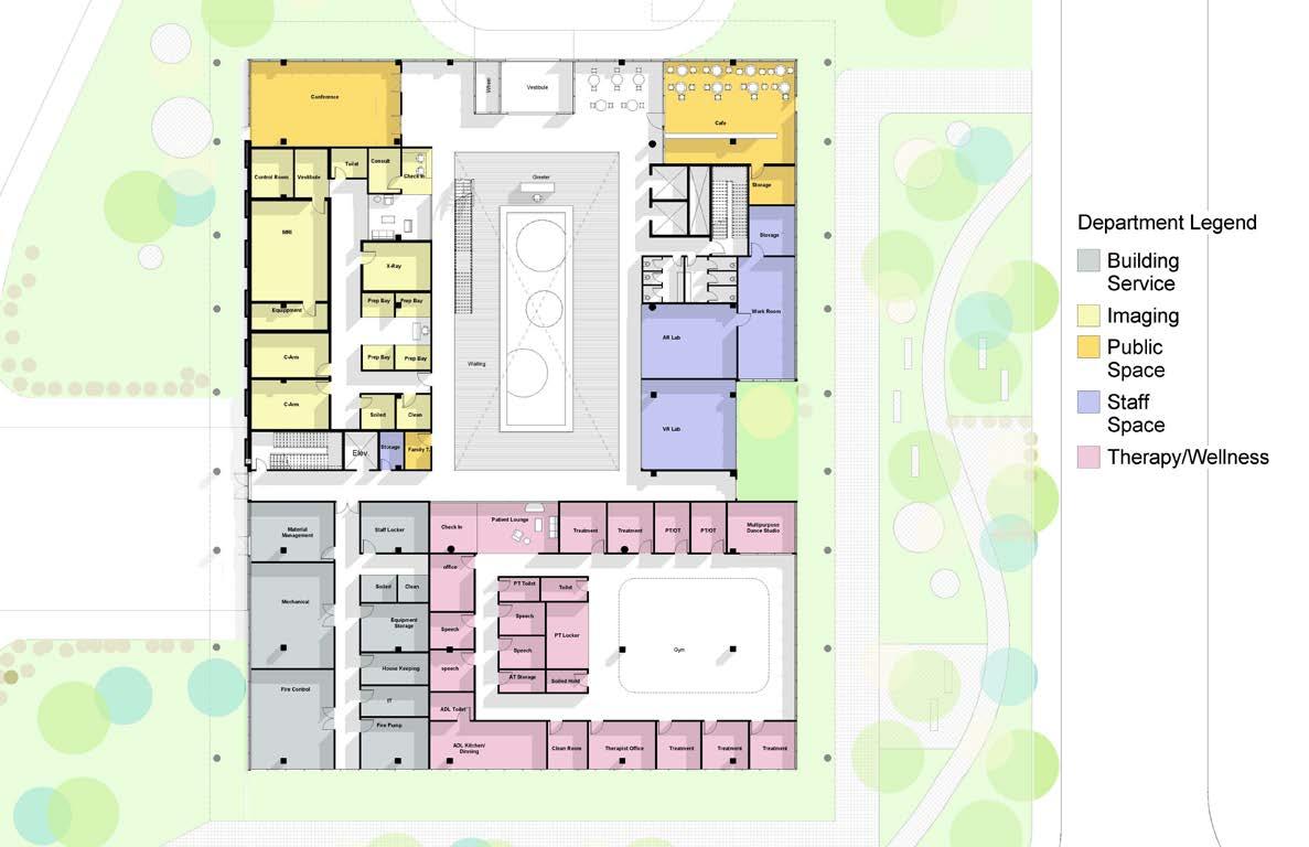 Since the demand for micro-hospitals in cities has been growing in recent years, the project aimed to understand efficient schematic planning for better patient flow in the ED department, Imaging, and ORs. Using FGI Guidelines to create a clear connection from the parking to the entrance the schematic design reflects an efficient master plan for the micro-hospital.