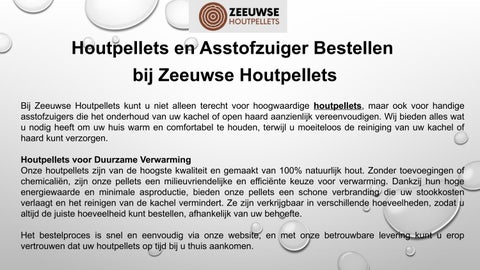 Zeeuwse Houtpellets biedt een scala aan producten, waaronder verschillende soorten pellets zoals Verba pellets, Duitse pellets, en Forge pellets, alsook gedroogd haardhout en accessoires. Het bedrijf staat bekend om zijn snelle bezorging in de Benelux, persoonlijke service, en duurzame verwarmingsoplossingen. Ze leveren pellets van schoon hout, die beter zijn voor het milieu en de portemonnee. Zeeuwse Houtpellets benadrukt de kwaliteit van hun producten en biedt zowel afhaal- als bezorgopties.