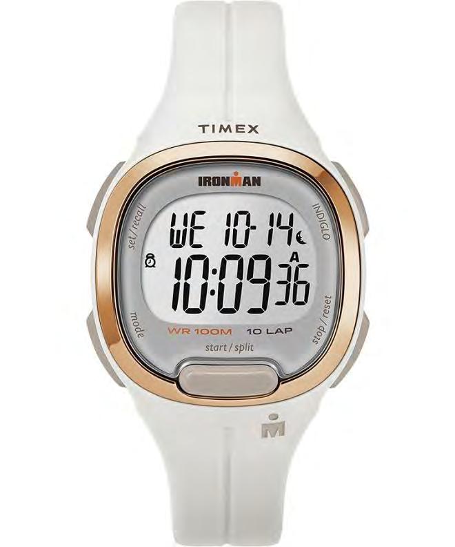 Timex Ironman to dziewczęcy zegarek, który doskonale pasuje do sportowych stylizacji. Utrzymane w białym kolorze urządzenie posiada pasek i zawieszoną na nim kopertę ze złotym pierścieniem, które wykonano z wytrzymałej i nieuczulającej żywicy industrialnej. Wodoszczelność została ustalona w klasie 100 metrów, co oznacza, że do wnętrza czasomierza nie dostanie się woda w przypadku pływania oraz nurkowania bez akwalungu.