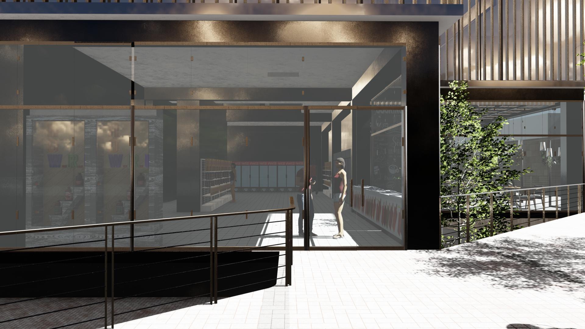 Posicionamos el proyecto de manera infiltrada colocando sótanos en donde colocar los servicios y estacionamientos para el aprovechamiento de los m2 además de estar ligeramente elevado para facilitar un semi-sótano dedicado al comercio.
