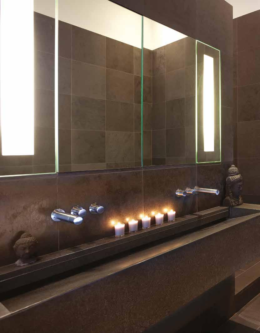 Rough, natural surfaces contrast with refined designs. Rough concrete textures mixed with polished stone surfaces create a multi-sensory experience. Black and dark grey shades, graphite and taupe are the key to a mystical home. The monochrome rooms are accentuated by dark blue tones and brushed metal. The muted colour palette is made for a tranquil space for personal rituals and wellness.