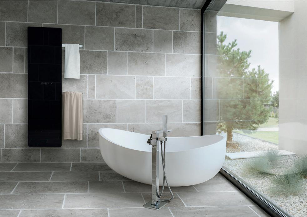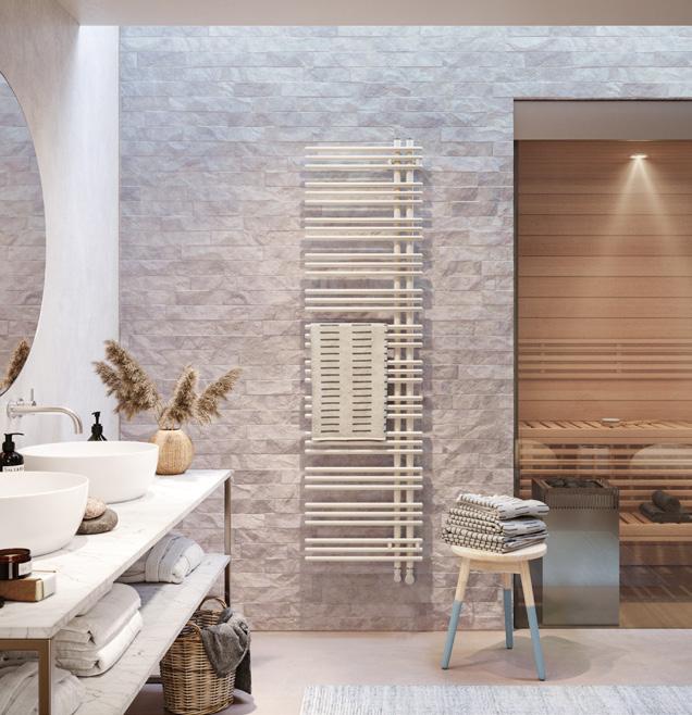 The Roda Spa combines practicality and contemporary design and a high heat output that will warm even the largest of bathrooms.