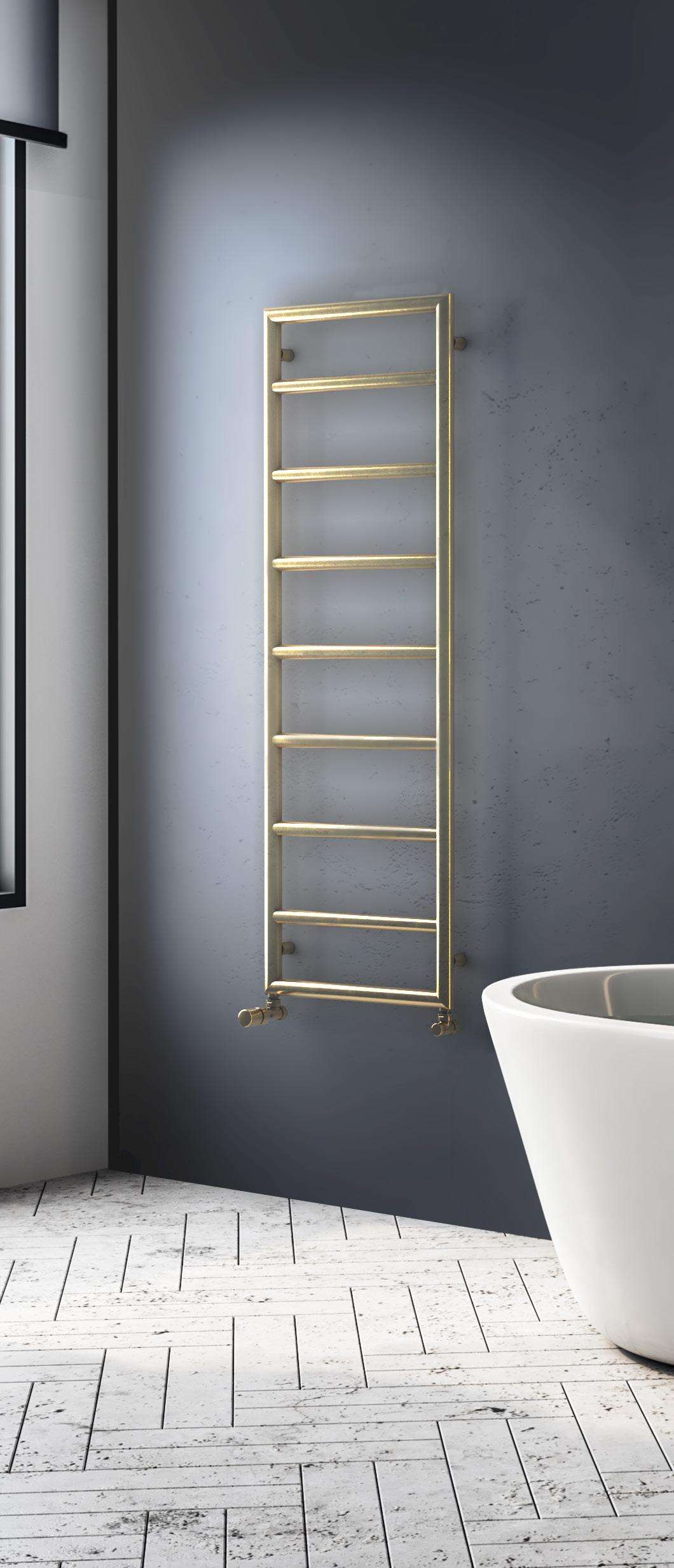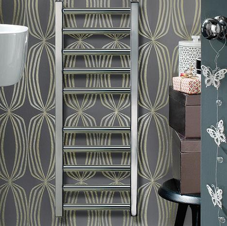 This gleaming towel warmer is a great all-rounder. Made from stainless steel, the polished finish it is perfect for wet rooms, alternatively you can now order the Chime our special PVD finishes. With wide rung spacing also allows plenty of space for towels – great for family bathrooms.