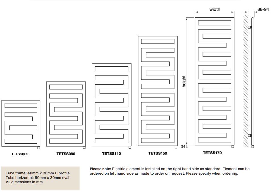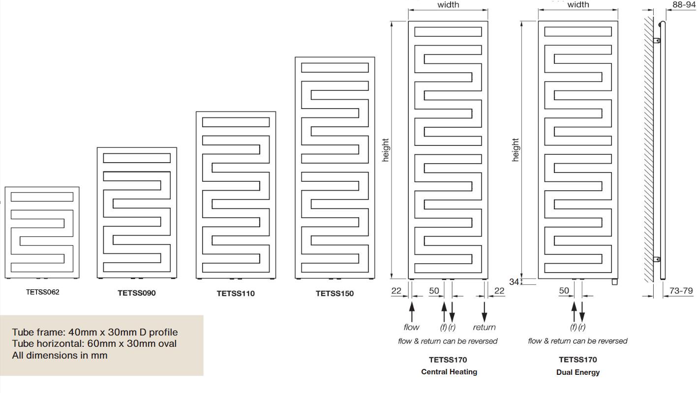 The Quaro Spa has an elegant square profile frame and horizontal heating pipes. Beautifully designed with clarity and simplicity, even the right-angled wall brackets are stylish. Smaller sizes ideal for fitting within cloakrooms and en-suites.
