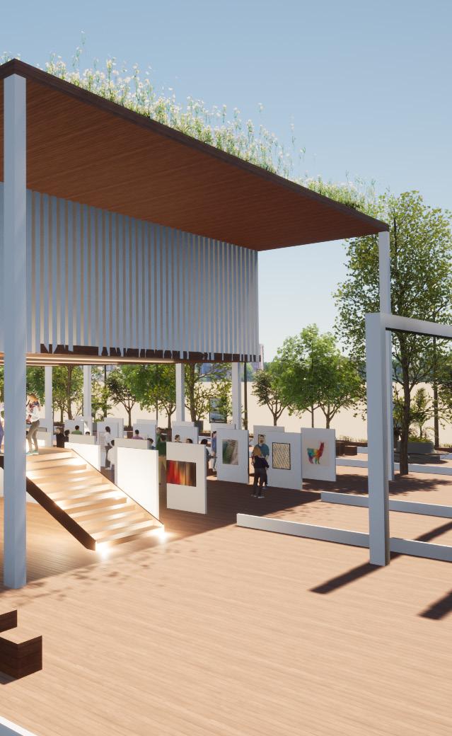 the platform main objective is to allow the view on tribune to the surrounding site, from greeney elements to pavements the main goal. different zones for different users or uses. royality, in circulationg throughout it and the comfort and direction moving upwards towards the skies as an indication to greater