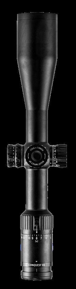 The 3-12x44 and 3-12x56 versions come standard with capped elevation and windage turrets. The 4-16x44, 4-16x50 and 6-24x50 models are available with external elevation turrets. Within the Conquest V4 product line, all external elevation turrets also include the ZEISS Ballistic Stop feature to ensure an absolute and positive return to zero under any conditions.