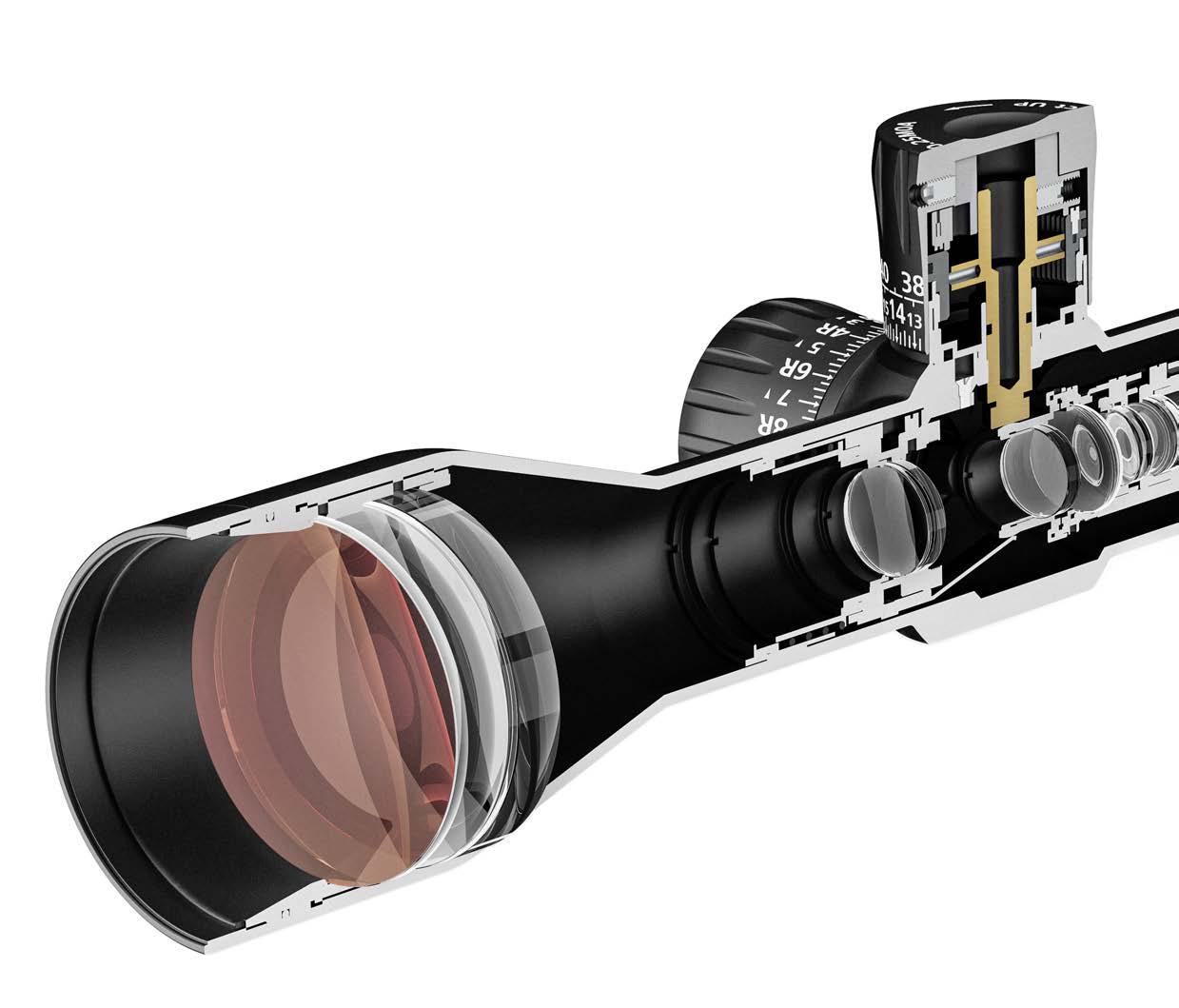SCHOTT glass, FL lenses, enhanced T* multi-coating and LotuTec® hydrophobic coating produce 92% light transmission and excellent target resolution across the entire magnification range, even in extreme low-light situations.