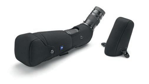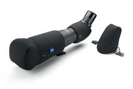 The case offers reliable protection against all kinds of weather and wet conditions, is comfortable to carry, and enables fast access to the spotting scope for use. The caps for the eyepiece and the objective lens can be securely attached to the case to prevent loss.