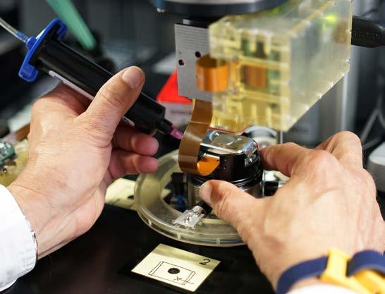 The daylight visible, ultra-fine, illuminated center dot is constructed from a fiber-optic element that is a fraction of the size of a human hair. The element is cut at a precise 45-degree angle to create a perfectly circular aiming dot. It can only be aligned and applied to the exact center of the wire-frame reticle via a highly specialized machine which controls the unique and meticulous installation process. The technology offers a super-precise illuminated point of aim.