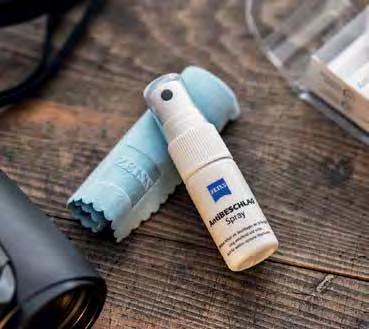 ZEISS AntiFOG spray is applied gently and quickly to the lens of your binoculars or spotting scopes. The result: the lens remains fog free for up to 72 hours – without interfering with its optical quality. In order to ensure that ZEISS AntiFOG achieves the best results, the lens should first be cleaned with the included ZEISS lens cleaning wipe. This makes it easy to maintain a crystal clear view, even in extremely humid conditions.