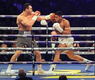 Klitschko bei seinem letzten Profikampf im April 2017 im Londoner Wembley-Stadion gegen den Briten Anthony Joshua (rechts)
