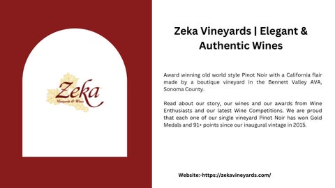 Zeka Vineyards is one of Bennett Valley's small wineries located in Sonoma County; the area is known for its Pinot Noirs, and the winery is famous for its ability to produce single-vineyard Pinot Noir wines through the method of minimal intervention, the wines reflecting the uniqueness of Sonoma terroir. For more information or to experience their exceptional wines, get in touch with Zeka Vineyards today.