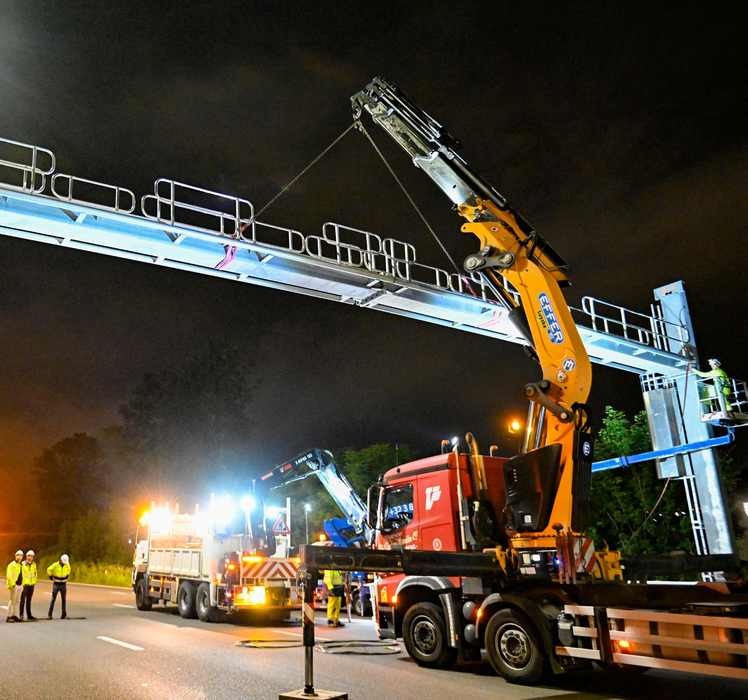 Laten we het nu hebben over de feitelijke ‘trigger’ voor dit interview: het plaatsen van een hergebruikte stalen portiek over de E40 tussen Bertem en Sterrebeek. Hoe is dit in zijn werk gegaan?