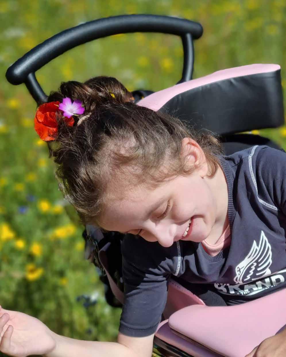 Elf jaar later is Jip volledig rolstoelafhankelijk, non-verbaal, krijgt ze sondevoeding via een MIC-KEY-button, heeft ze een forse scoliose, veel epileptische activiteit en een ernstige prikkelverwerkingsstoornis. Door geluid, drukte, onverwachte gebeurtenissen raakt Jip zo erg overprikkeld dat dit zich uit in automutilatie en agressief gedrag. Dagelijks slaat ze zichzelf met volle vuisten in het gezicht, met flinke blauwe plekken en builen tot gevolg. We proberen haar af te leiden met iets wat ze normaal gesproken erg leuk vindt, maar vaak geeft dit alleen meer onrust en gaat ze zich even later weer slaan. Haar bandbreedte in de verwerking van prikkels is heel erg smal, wat vandaag voor overprikkeling zorgt kan morgen onderprikkeling zijn voor haar. In een kliniek observeerden ze Jip voor drie maanden om te kijken waar haar gedrag en onrust vandaan komt. Onder narcose bekeken ze haar gebit, uit een 24 uurs-EEG bleek dat ze veel epileptische activiteit heeft en ze is van top tot teen nagekeken om lichamelijke (pijn)klachten uit te sluiten. In goed overleg met de orthopedagoog en de Arts VG zijn we gestart met gedragsregulerende medicatie. Een ontzettend moeilijke beslissing, maar we besloten het een kans te geven met het medicijn Risperidon. Na een aantal weken was ze niet meer de vrolijke, goedlachse Jip. Ik had er vooral veel moeite mee dat ze geen plezier meer beleefde aan de activiteiten waar ze normaal zo van genoot. Dit maakt je zo verdrietig dat je je afgevraagt wat de juiste beslissing is. We besloten de Risperidon af te bouwen en het te proberen met het medicijn Dipiperon. Momenteel zit ze in de testfase, maar hopelijk brengt dit medicijn haar de rust die ze verdient.