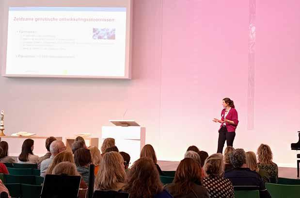 ‘Ik ben aan het evangeliseren en dat in deze kerk,’ zegt internist dr. Laura de Graaff-Herder wijzend naar de kerkzaal waar ze als tweede spreker op het podium staat om te vertellen hoe noodzakelijk het is dat er meer syndroom-internisten komen. 'Kennisdeling is hard nodig voor de medische zorg voor volwassenen met zeldzame genetische syndromen,' vertelt Laura. Als syndroom-internist, een specialisme waar ze zich hard voor maakt, staat ze tussen de ouders en de medisch specialist in en heeft ze meer aandacht voor de psychosociale kant.
