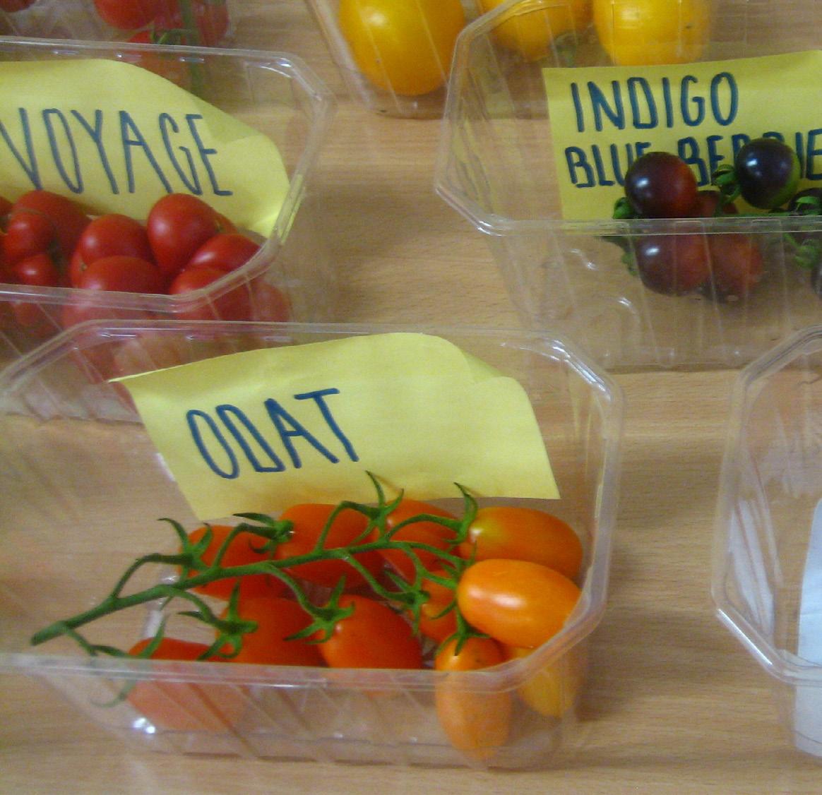 MNOŽSTVÍ ODRŮD RAJČAT V přednáškové místnosti byl vystaven široký sorti ment pěstovaných odrůd rajčat. Jejich pěstování má na starosti Ing. Marek Kubíček z ČZU. V pokusech se porovnává kolem šesti desítek odrůd. Také probíhají pokusy s variantami různých ošetření. Rajčata na stanici pěstují na poli i ve fóliovníku. Poté dosažené výsledky porovnávají. Klasikou hybridní odrůdu rajčat představuje Start F1.