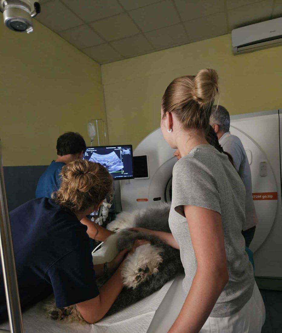 jim lékař podrobně ukázal práci s ním i vytváření snímků. Pro některé šlo o výjimečnou zkušenost. Součástí kliniky byl samozřejmě rentgen, sonograf, operační sál, přístroje na vyšetřování krve i moči apod. Náplní práce studentek byla např. fixace zvířat, vakcinace, stříhání drápků, aplikování infuzí, příprava operačního sálu. Jeden z lékařů byl specialista na kardiologii, dívky tak získaly nové znalosti v oblasti vyšetření srdce.