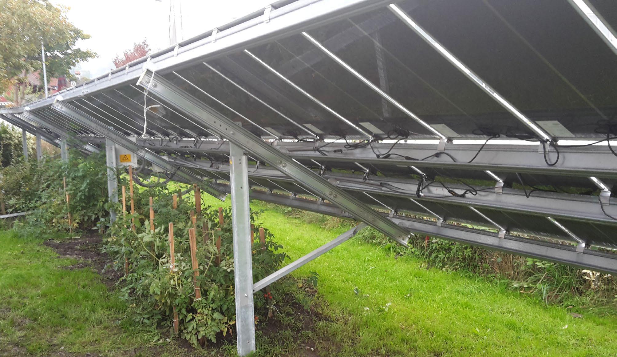 východozápadní orientací. Nejvíce energie vyrábějí při východu a západu slunce. Díky jejich instalaci nízko nad zemí se pod nimi nedá nic pěstovat, ale jedná se o malou plochu. Hospodařit lze v pásech mezi panely. Tento systém vyrábí nejvíce energie v energetických špičkách, ráno a večer. K výhodám patří i skutečnost, že nehrozí zapadnutí sněhem.