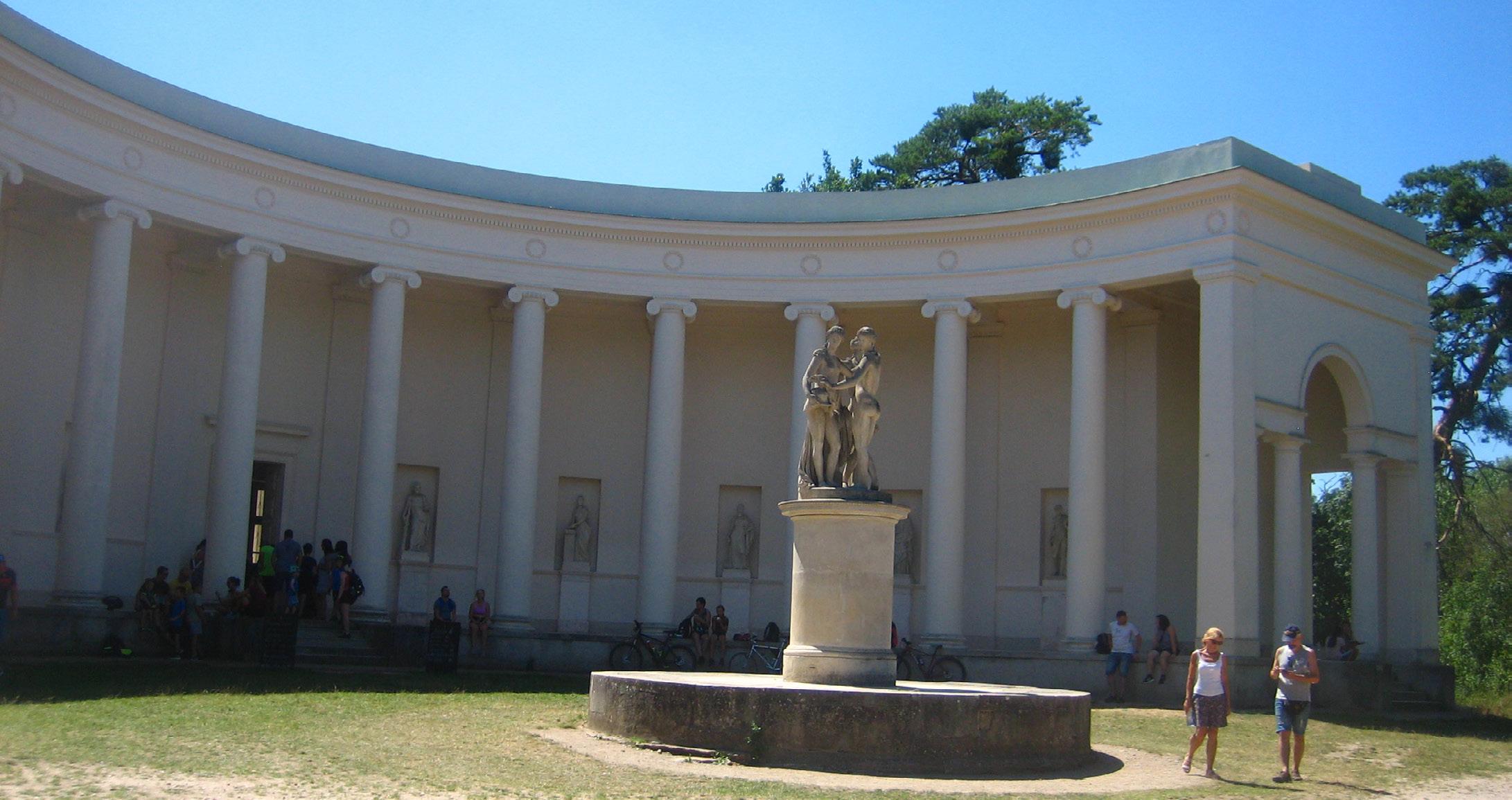Letohrádek ve tvaru podkovy, který byl vybudován v devatenáctém století, podpírá dvanáct jónských sloupů. V průčelích se nacházejí arkády, na které lze vystoupat po pěti schodech. Na zadní stěně kolonády ve výklencích jsou umístěny alegorické sochy klasického umění a věd. Návštěvníky upoutají svou propracovaností a krásou. Klasicistní kolonáda je dílem Jana Karla Engela.