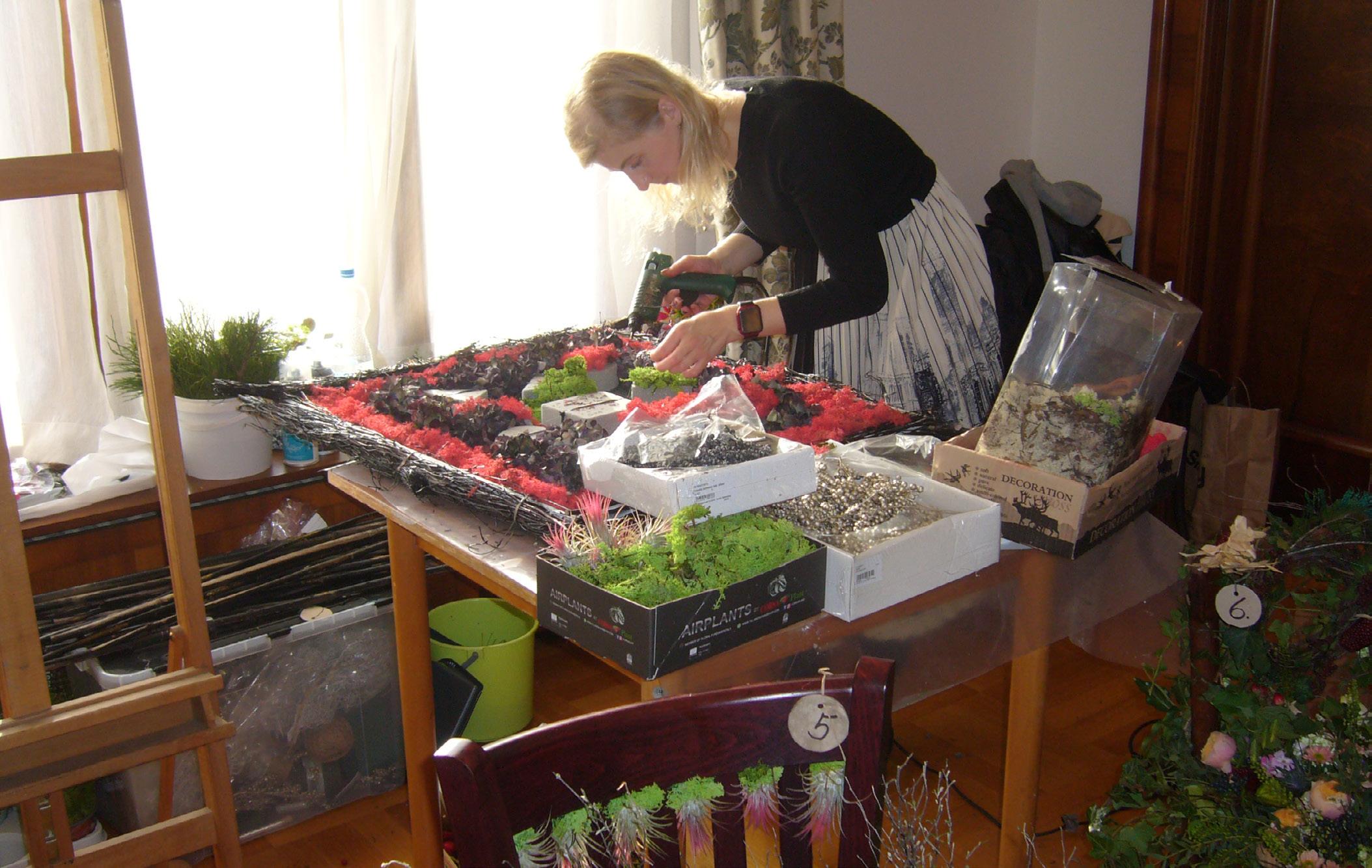 nemusí plnit svoji původní funkci. Nebyla proto hodnocena její vlastní úroveň, honosnost, ale její vztah k přírodě ze živých květin, rostlin a jejich částí. Přízdoba židle byla hodnocena jako jeden celek s důrazem na kvalitu zpracování květinové přízdoby s možností použití jakéhokoli doplňku neživého charakteru. Porotou bylo dále určeno, že živý materiál musí ve vytvořeném díle převládat, případná konstrukce vyrobená na místě a další technický materiál byl povolen soutěžícím upevnit na židli až v průběhu soutěže. Velikost židle pro tento úkol byla stanovena na klasickou velikost dospělého člověka. Trojici úkolů uzavírala „Dekorace obrazu ze sušených a umělých rostlin“ inspirovaná kubismem, limitovaná dobou trvání 90 minut. Velikost obrazu klasického tvaru ohraničena rozměry cca 60–65 x 40–45 cm. V aranžmá musely být zastoupeny jak sušené rostliny nebo jejich části, tak i rostliny umělé. Tyto mohly být doplněny rostlinami stabilizovanými nebo preparovanými. Případně použitý dekorační materiál nesměl obsahovat již živé rostliny nebo jejich části. Soutěžící si mohli základní desku předem vypracovat, polepit či jinak vhodně upravit floristickým materiálem, a to jak plošně nebo s jemnou texturou s použitím dvou druhů materiálu, např. kombinace jednoho druhu plodu a látky. Pokud soutěžící zvolili obraz bez podkladové desky, měli možnost předem provést základní podkladový výplet podobně jako u obrazu s deskou. Při hodnocení porota dbala ve značné míře také na zpracování. Zajímalo je, zda materiál, s nímž soutěžící pracovali opticky převažuje nad předem připraveným podkladem. Povoleno bylo případné přesahování aranžmá přes rám obrazu.