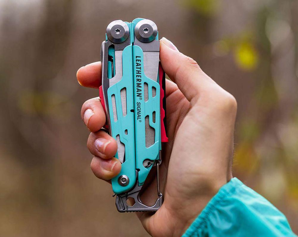 Lose yourself in the outdoors. In the all-new Signal, Leatherman’s traditional functional tools like pliers, saw, can and bottle opener, awl, a variety of hex and Leatherman bit drivers, and combo knife blade pair with new preparedness features like a shaped diamond coated sharpener for maintaining your straight and serrated blade, fire-starting ferro rod, and an emergency whistle. Stay ready for the expected (and unexpected) no matter where you are with everything you need right on your belt.