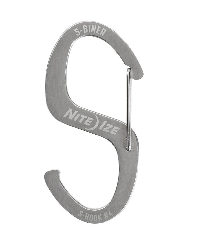 The iconic S-Biner design allows quick and easy attachment using its unique double-gated design. This innovative micro-sized dual carabiner has a center locking lever activated with a simple twist to keep items secure. The stainless steel body is strong and durable.