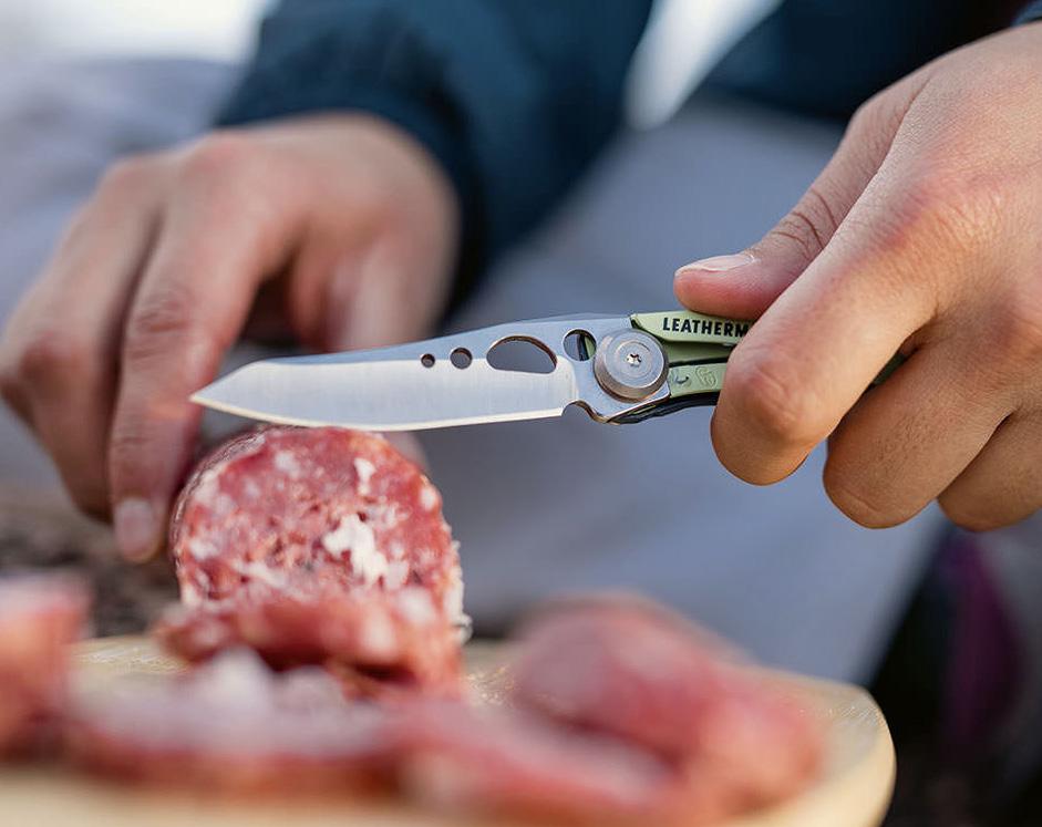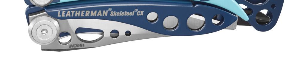 The sleek new Leatherman Skeletool CX gets you back to basics... very cool basics. The Skeletool CX has only the most necessary of multi-tool features, because sometimes that's all you need. With a 154CM stainless steel blade, pliers, bit driver, pocket clip and carabiner/bottle opener, you're set. Lightweight, low volume, perfect size. The Skeletool CX: who says more is better?