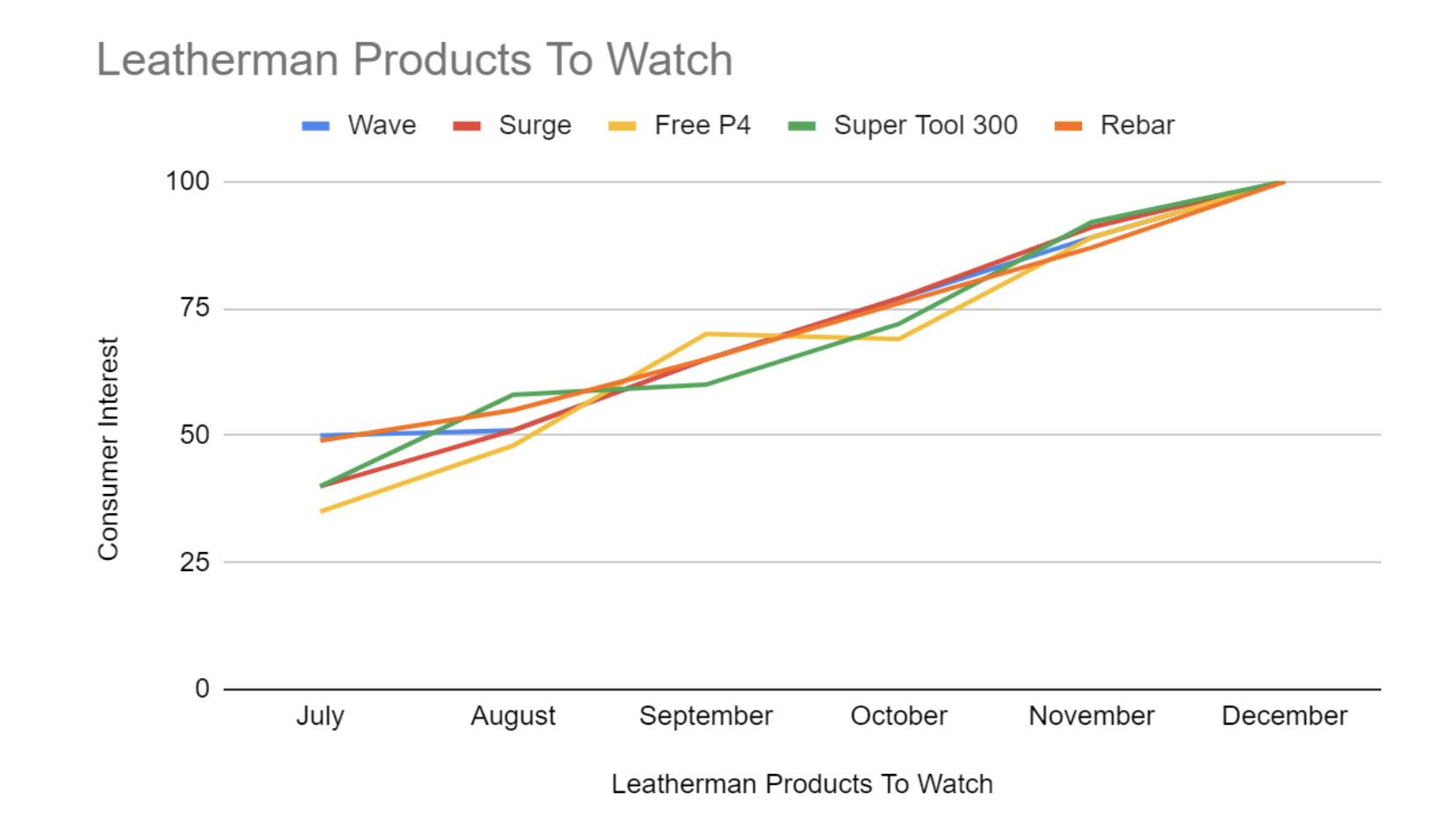 Leatherman: Sees a significant uptick in popularity from August through December. Key products include the