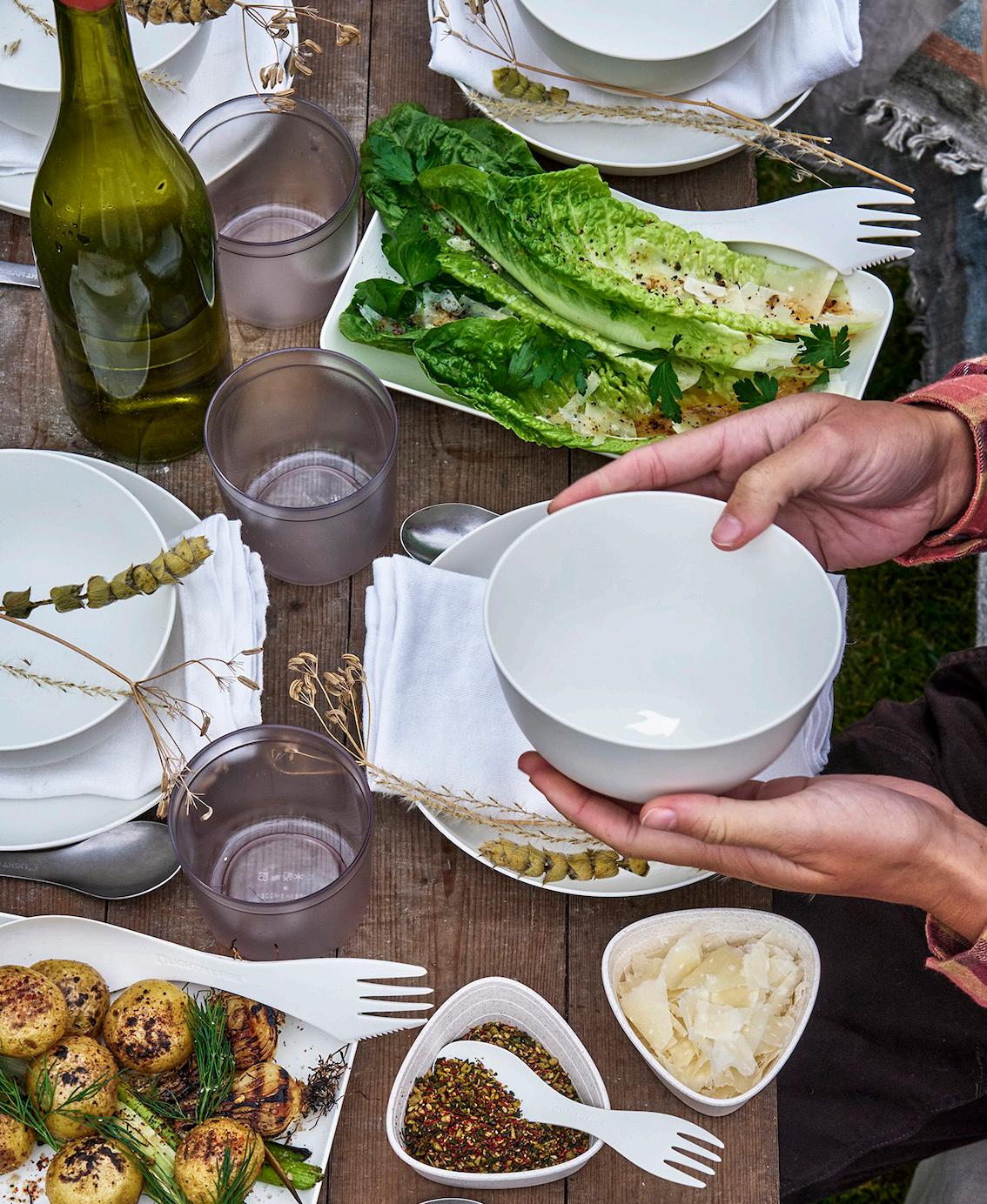 Part of our tableware collection, this platter can be used alone or to serve meals for small or large gatherings under the sky and stars. It’s great for holding a sandwich and cup, and for serving up group portions without spilling a drop. Easy to stack, move and clean, it’s made from Bioplastic (15% biobased) and the matte finish is highly durable and scratchproof.