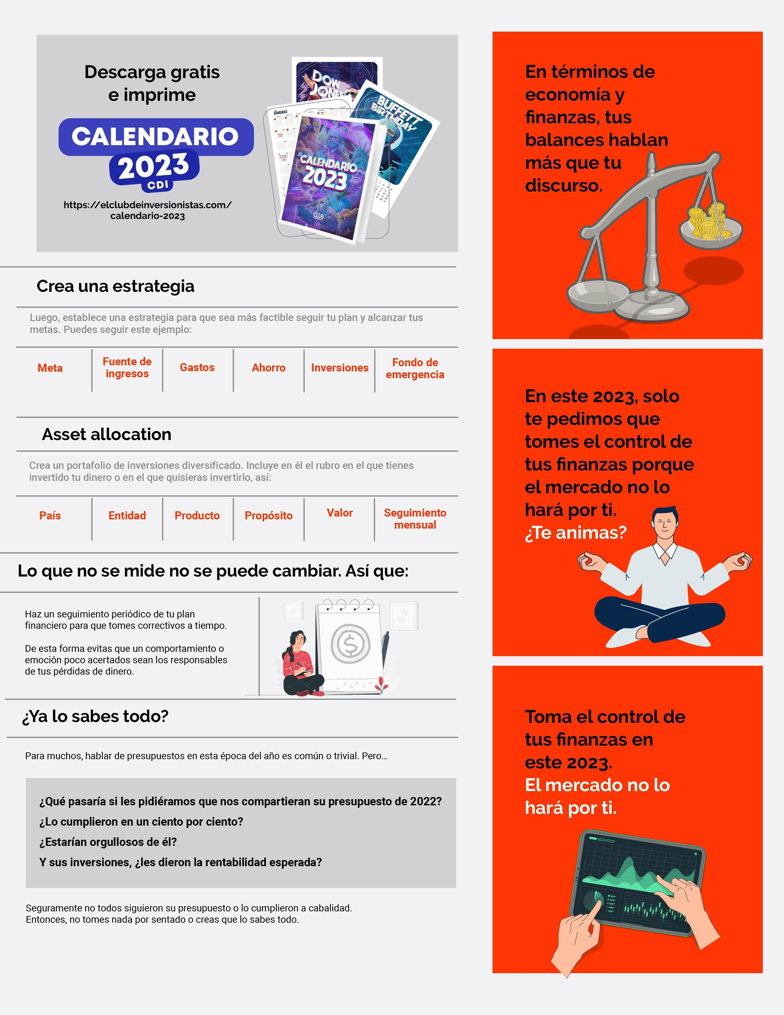 Por otro lado, empezamos el año con las frases más recordadas del CEO de Morgan Stanley, una de las principales instituciones financieras del mundo, y con una infografía que te puede ayudar a planear tu año financiero, hacer seguimiento a tus metas y tomar acción para llegar a ellas.