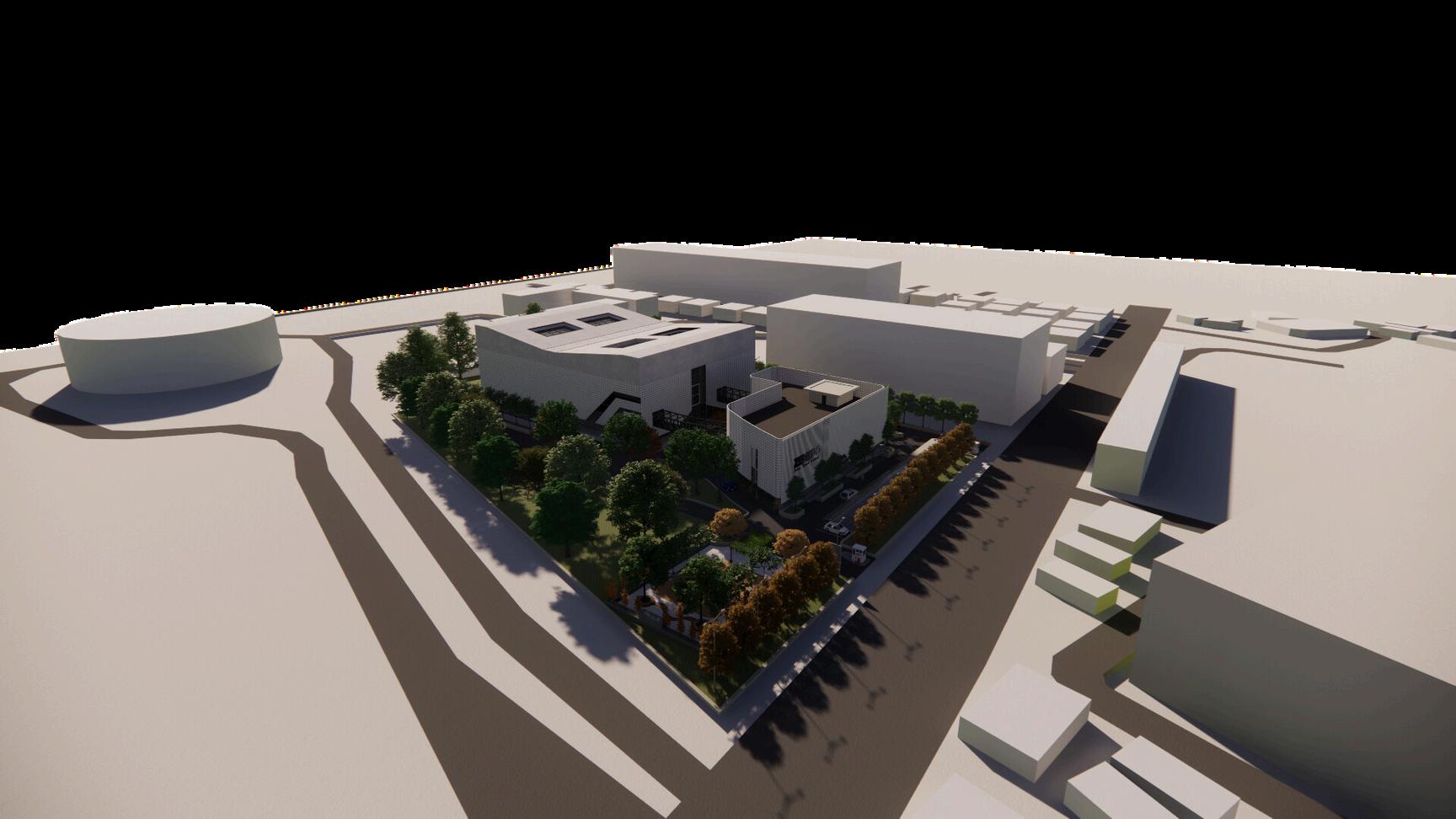 Hasil akhir massa bangunan yang dinaikkan untuk memenuhi fungsi ruang serta penambahan koridor dan secondary skin untuk fasad, guna privasi dan penghubunh bangunan serta penghalau silau matahari dari barat.