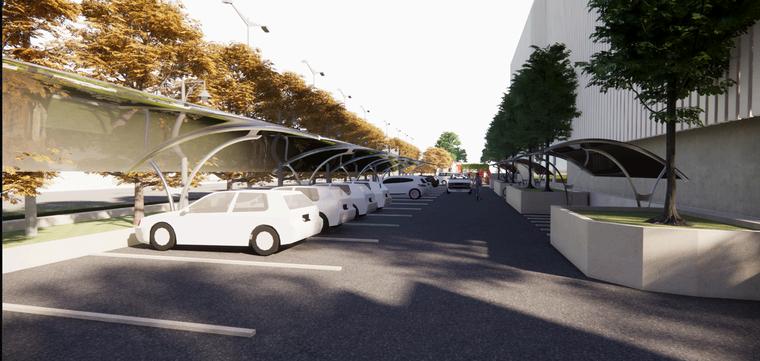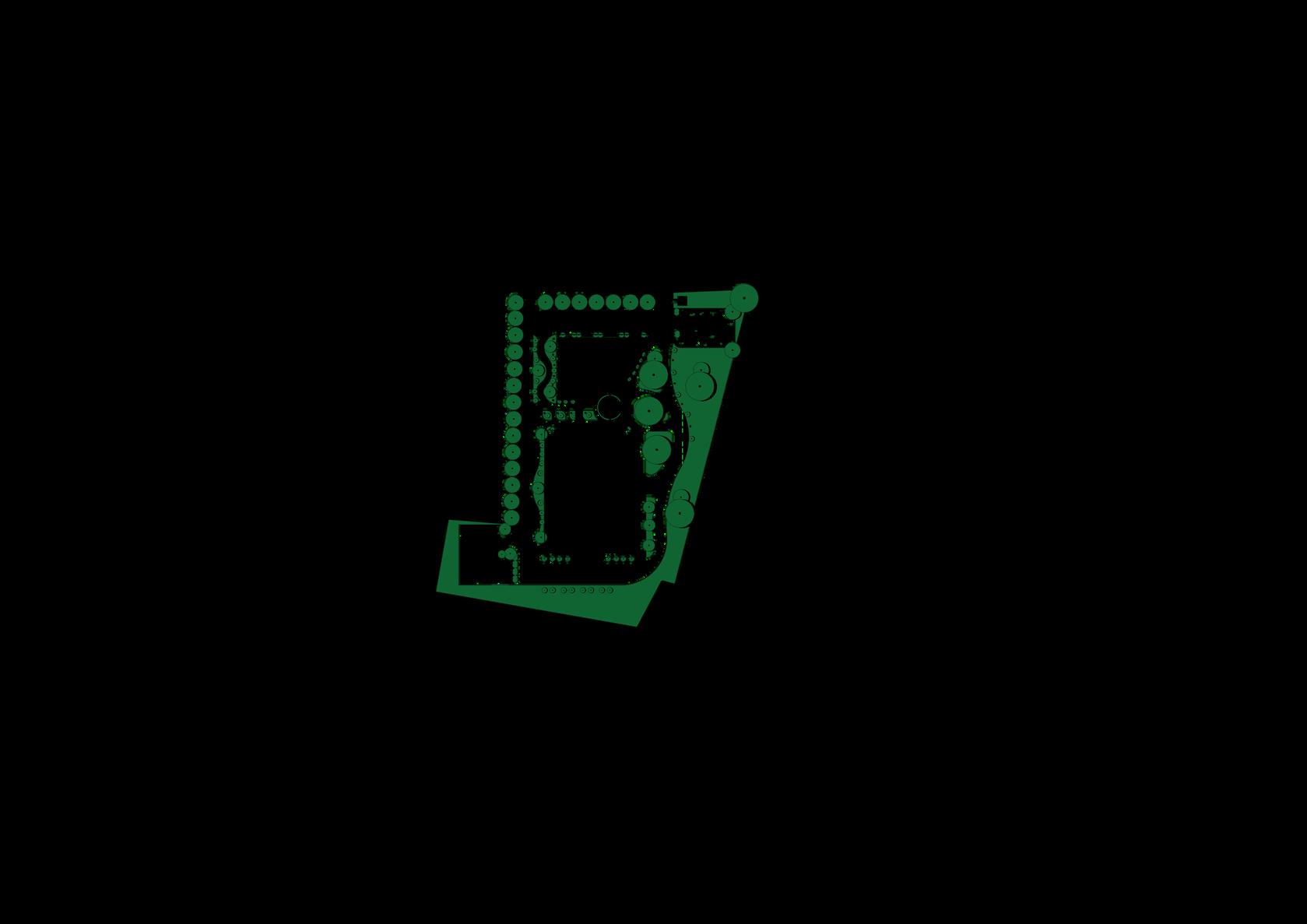 Vegetasi pada bagian t menjadi penghalang mas matarahari berlebih, menjadi titik utama dari landscape berupa taman dan playground Pada sisi- sisi tapak dari berbagaiarahjugaditanamkanberbagai pohon, guna menjadikan kawasan lebih sejuk dan asri karena daerah tersebut memilikicuacayangpanasdanberpolusi