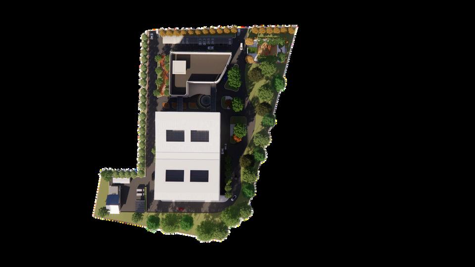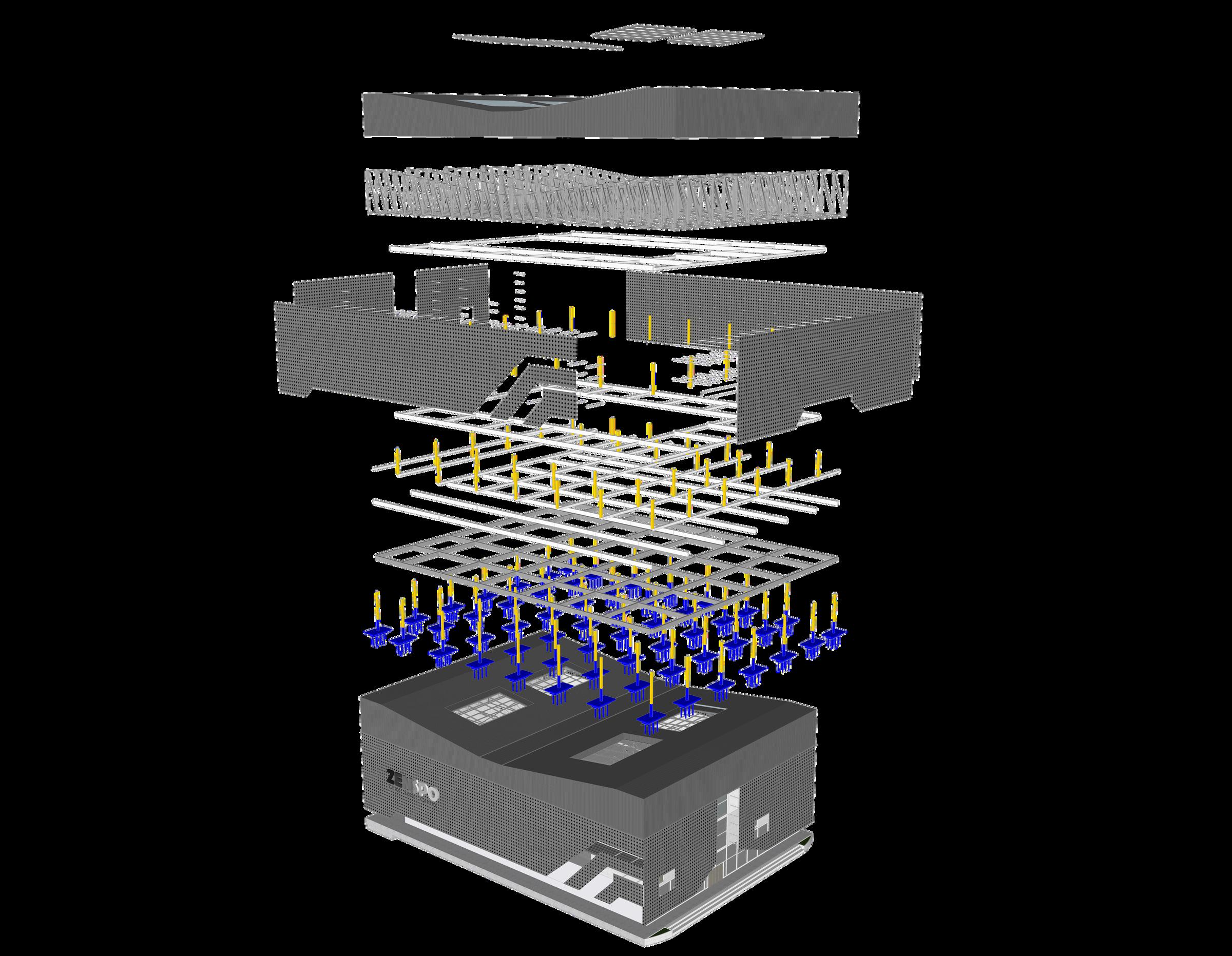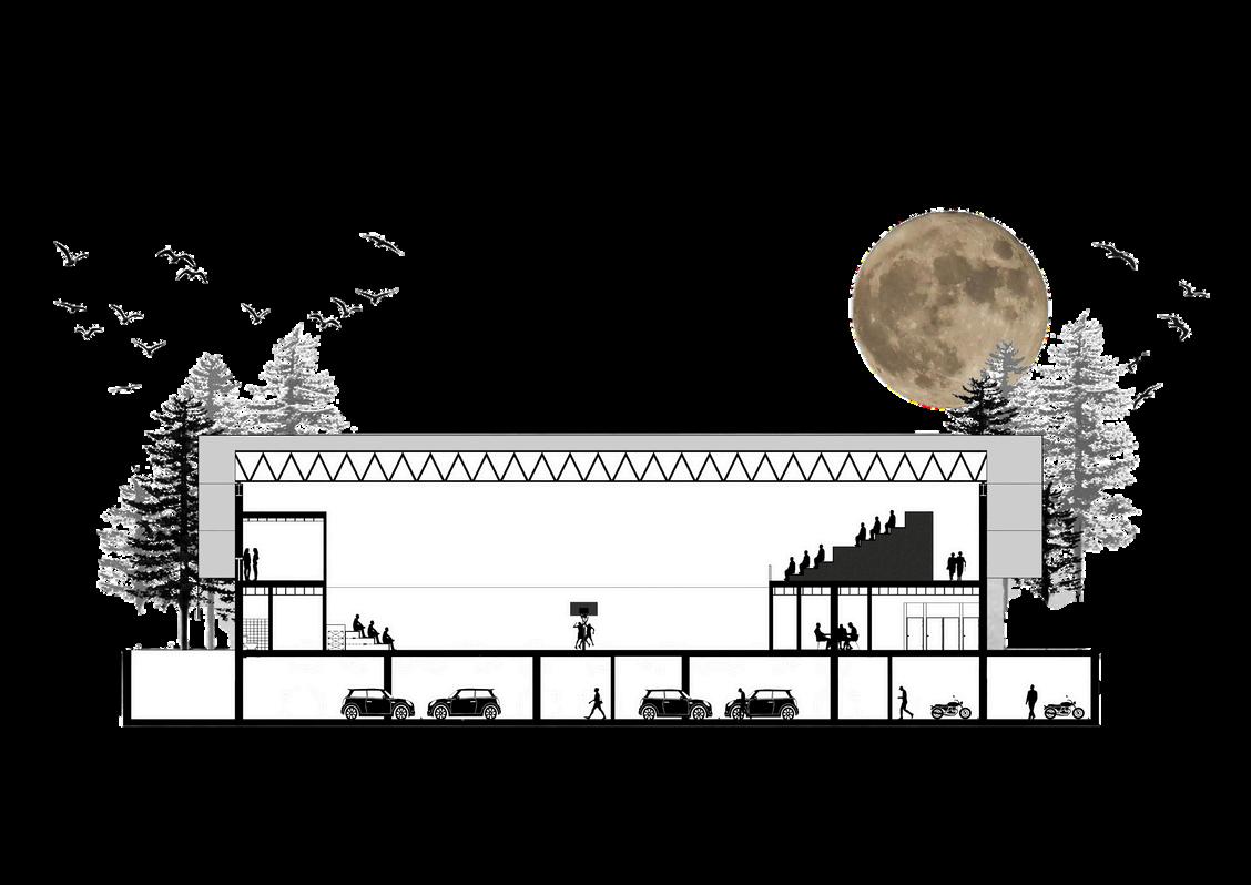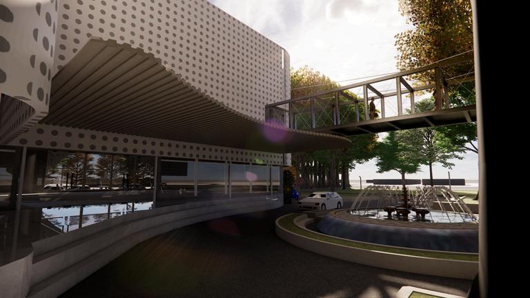 Menggunakan konsep desain Industrial modern, membuat bangunan ini terekspose dari segi tampilandanstrukturnya