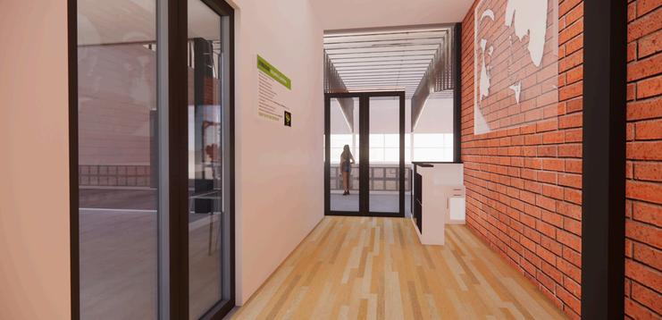 Meskipun terdiri dari 2 massa berbeda, namun kedua massa tetap dapat terhubung karena disatukan dengan penghubung berupa koridor yang beradaditengah-tengahkeduamassa, dapat digunakan pengunjung untuk berpindah dari gedung satu ke gedung lainnya