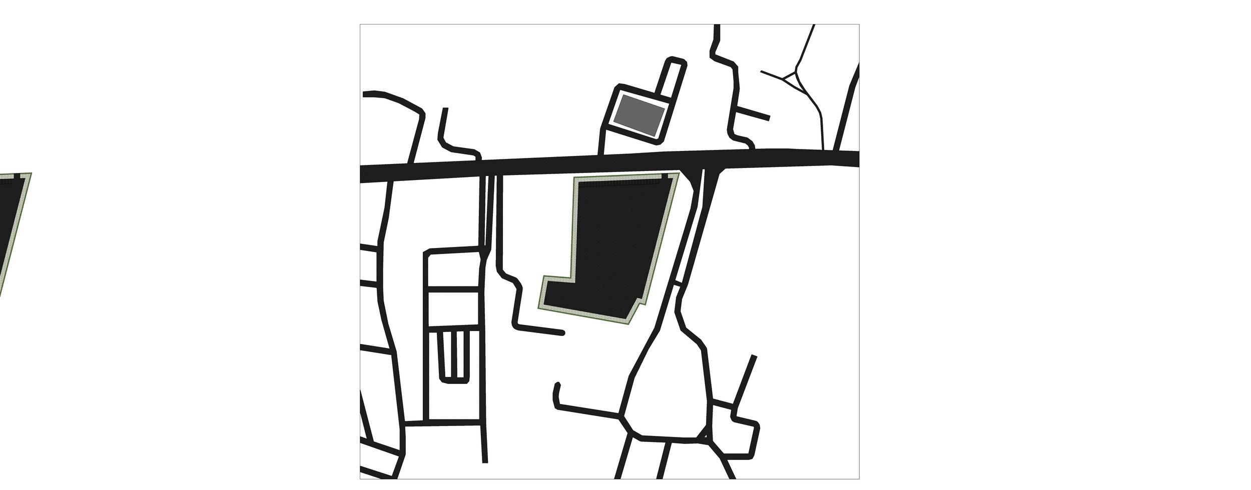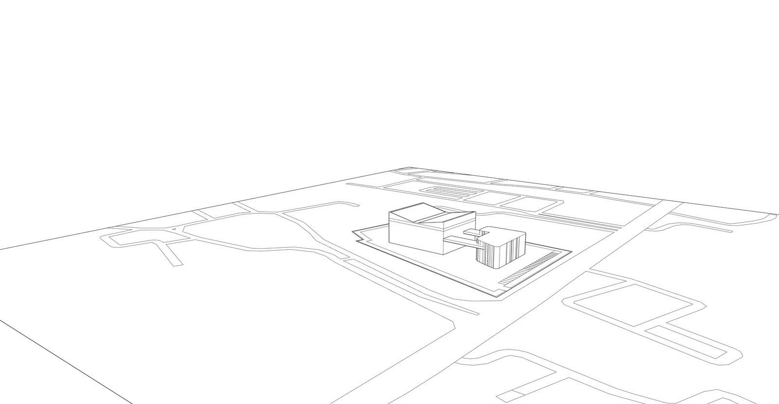 Dipecah menjadi 2 massa dengan bentuk dasar yang merespon bentuk site.