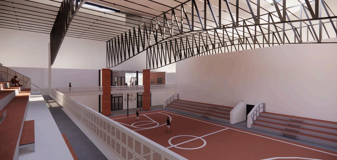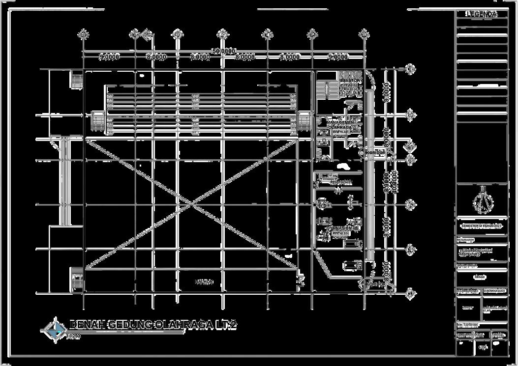 Pada gedung olahraga terdapat basement, dengan lantai 1 yang memiliki 1 lapangan multifungsi yang terdapat 3 macam jenis olahraga, yaitu bulu tangkis, futsal dan basket, difasilitasi juga ruangpelatih,areabilas,lavatory,ruanggantidanlokersertaklinik, ,resepsionist,ruangpengelola,areabelanja,sertacoffeshop,Pada lantai2terdapatareatribunpasif,lavatorydanjugaruanggym.