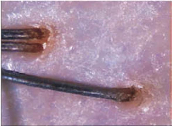 Hårets svovlbroer og skællag er ødelagt og det bør klippes af så det ikke spalter yderligere.