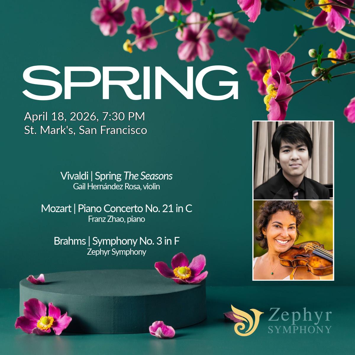On behalf of our musicians, artistic leadership, and dedicated volunteers, thank you for being part of this evening and for your continued belief in our work. We hope you will also join us for our final concert of the season: “Spring” featuring works by Brahms, Mozart, and Vivaldi on April 17, 2026. Complete details regarding performance times, venues, and ticketing are available at zephyrsymphony.org.
