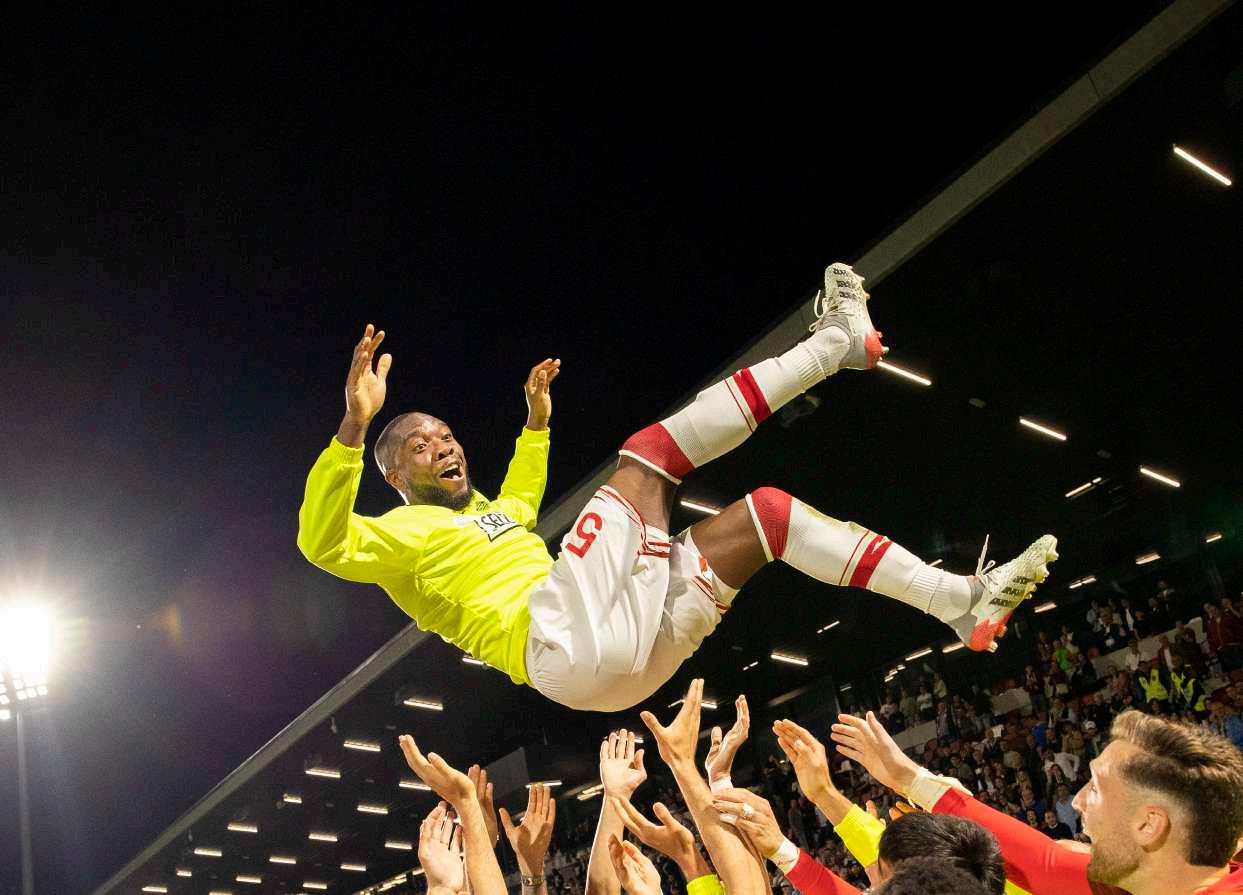 Nach dem letzten Meisterschaftsspiel der Saison 2023/24 wurde ein Spieler ganz besonders gefeiert: Kévin Vinetot, der nach sieben erfolgreichen Jahren Abschied vom FC Südtirol nahm. Sichtlich gerührt verabschiedete er sich vor dem nahezu ausverkauften Drusus-Stadion, während seine Teamkollegen ihn feierlich in die Luft hoben. Die gesamte Mannschaft wurde vom Südtiroler Publikum mit tosendem Applaus bedacht – eine perfekte Art, sich für den vorzeitigen Klassenerhalt in der Serie B zu bedanken.
