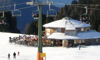 Die Skihütten in ObereggenInmittenPampeago des Skigebietesnel centro sciistico