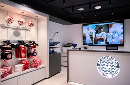 FANSTORE – Un prezioso punto di riferimento a Bolzano FANSTORE – Weißrote Begeisterung auch außerhalb der Spieltage