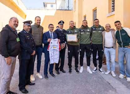 Dank für die Bereitschaft und den wertvollen Besuch“, erklärte Direktor Giovangiuseppe Monti, der die FCS-Delegation beim Betreten der Einrichtung in der Bozner Dante-Straße herzlich willkommen hieß. Im Hof der Justizvollzugsanstalt traf die Delegation des FC Südtirol auf rund zwanzig Insassen und führte mit ihnen ein offenes Gespräch. Nach der lebhaften Fragerunde und einer kurzen Diskussion über die laufende WM-Qualifikation ging man zum sportlichen Teil des Besuchs über. Auf dem Spielfeld übten die Weißroten gemeinsam mit den Inhaftierten Passspiel, Ballkontrolle und Torabschlüsse; ein Moment des Miteinanders, in dem der Fußball einmal mehr seine verbindende Kraft unter Beweis stellte. Am Ende des Treffens überreichte der FC Südtirol dem Direktor Giovangiuseppe Monti ein offizielles Spieltrikot, während den weiteren Anwesenden ein von der Mannschaft signierter Ball übergeben wurde. Im Gegenzug erhielten die Weißroten eine Dankesurkunde als Zeichen der Wertschätzung für ihren Besuch und das gezeigte soziale Engagement.