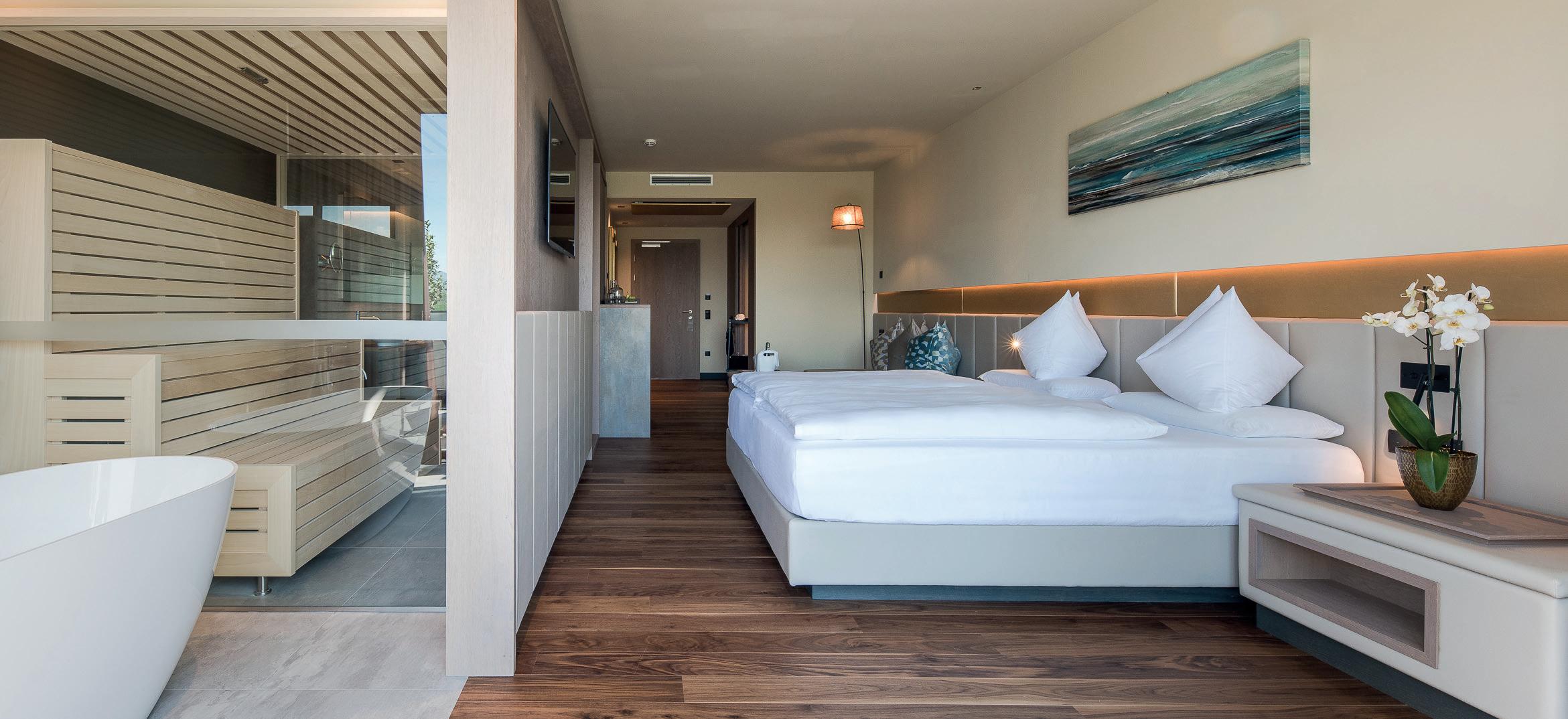 Un tetto verde non è solo bello da vedere, ma contribuisce anche a un clima più sano e fornisce un habitat indisturbato per insetti e api. Tecnicamente, in inverno isola termicamente e in estate contribuisce al raffreddamento. In breve, parliamo di un notevole risparmio energetico per riscaldare in inverno e raffreddare in estate. Inoltre, riduce l‘elettrosmog e crea così le migliori condizioni per un sonno sano nelle nostre suite.