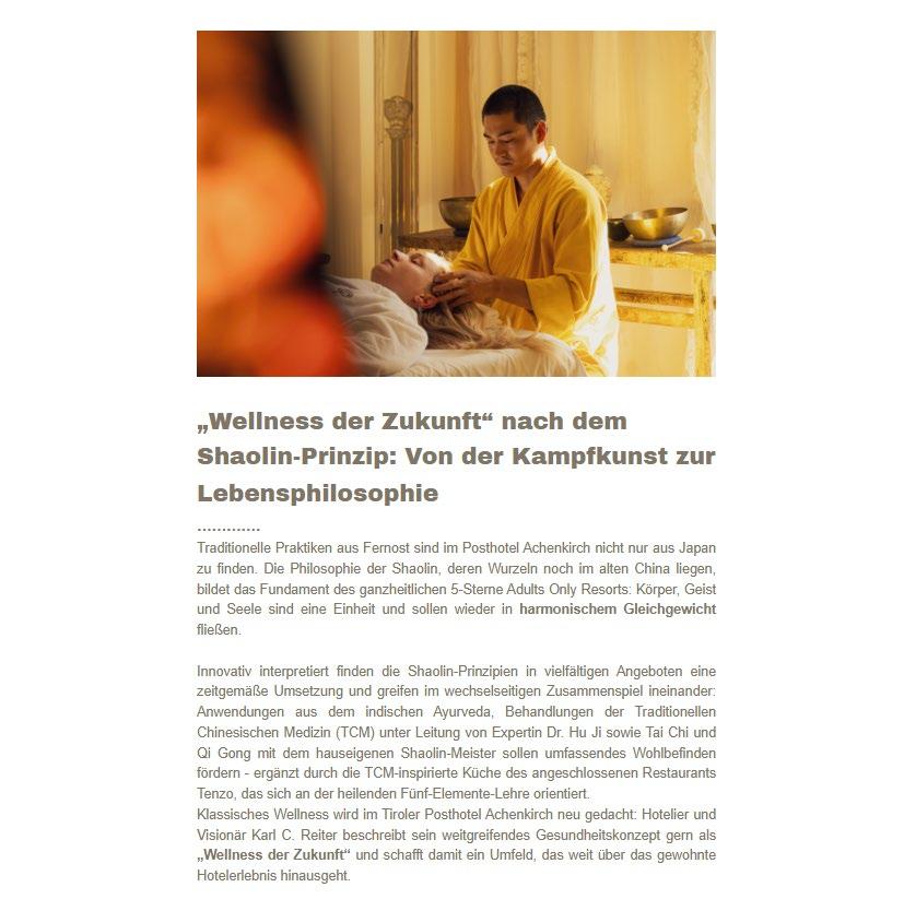 Japanische Wellnesskunst in Tirol Österreichs erstes Original Japanese Head Spa im Posthotel Achenkirch