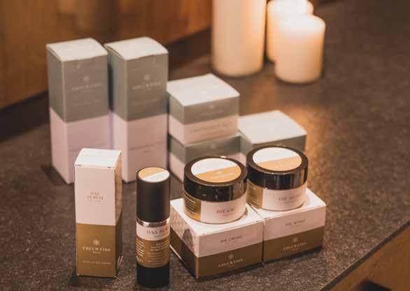 Das EDELWEISS Mountain Resort begeistert Apothekerin & Kosmetikerin Mag. Pharm. Monika WirnsbergerMachner schon seit Jahren als Urlaubsdestination. Viele leidenschaftliche Gespräche mit Gastgeberin Karin Hettegger über die regionalen Heilkräuter, ganzheit liches Wohlgefühl sowie qualitätsvolles Wertebewusstsein führten zur Idee und Entwicklung der hauseigenen Kosmetiklinie.