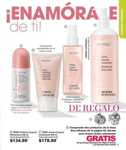 G Comprando dos productos de la línea Eau d’Amour de la página 45, llévate unos Aretes Arden totalmente