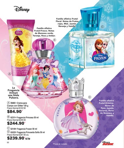 C 42149• Fragancia Frozen 50 ml D 42432• Fragancia Princesita Sofía 50 ml Precio Normal $287.90 c/u
